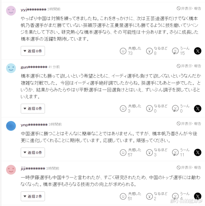 日本球迷热议女单全军覆没: 很难击败孙王 桥本也被针对 该改变策略了