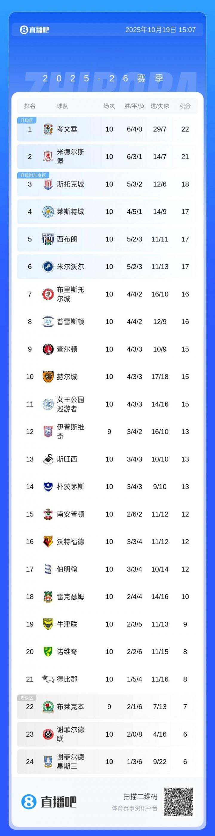 直播吧10月19日讯英冠第10轮比赛,考文垂2-0击败布莱克本,新赛季10轮不败,继续领跑积分榜。