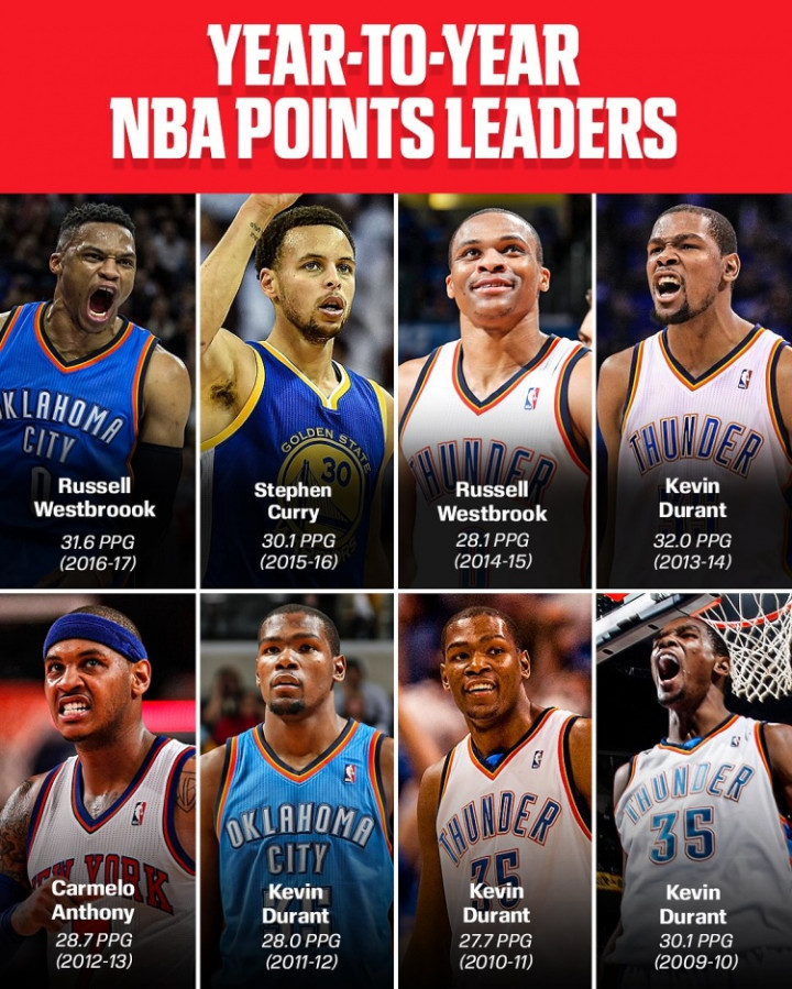 过去16个赛季得分王由8人包办! 新赛季会有新得分王诞生吗?