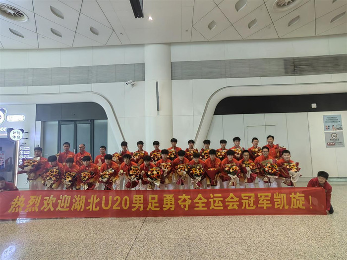 2025年11月13日下午,承载着湖北U20男足冠军队荣耀的航班,降落在武汉天河国际机场T3航站楼。当日的航站楼出口通道早已被喜庆氛围包裹,湖北足球青训梯队队员身着统一服装,分列通道两侧,手持鲜花与横幅静候。