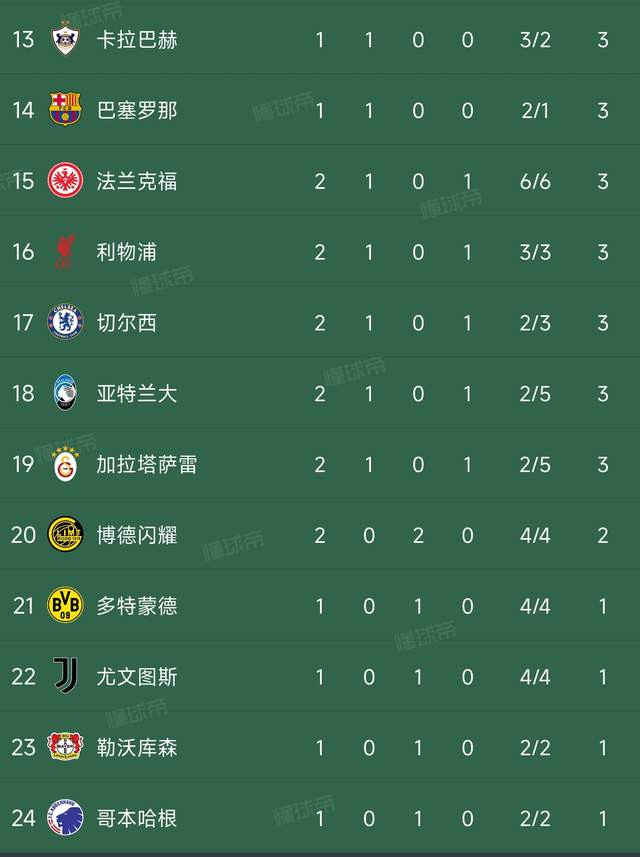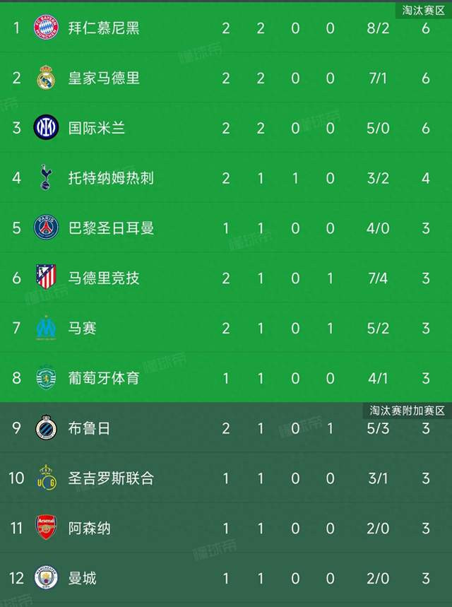 随着拜仁5-1 , 皇马5-1 , 利物浦0-1爆冷 , 欧冠积分榜再次更新!