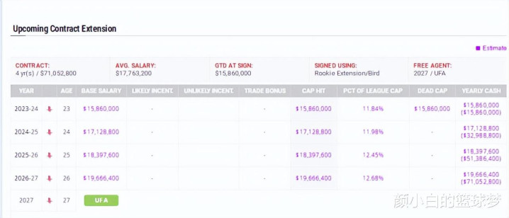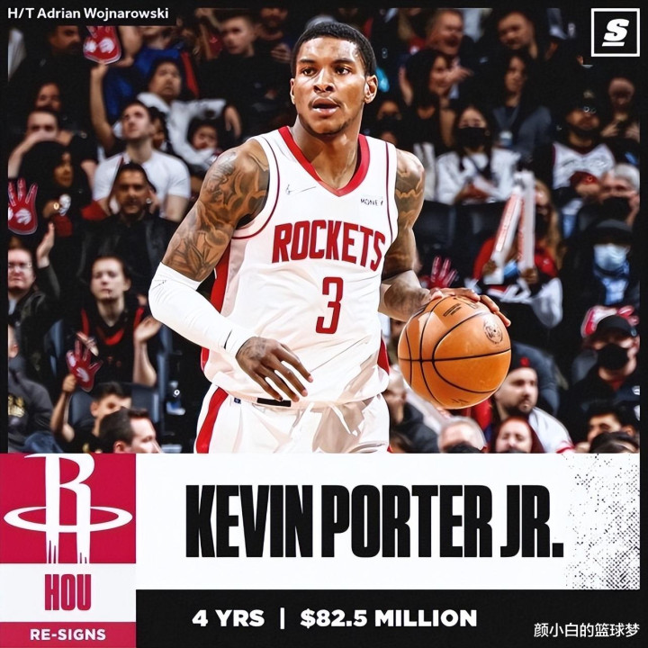 时间回到2022年10月17日,火箭在续约截止日与小凯文-波特达成一份四年8250万的合同,这份4年8250万的合同实际上只有7105万,有1145万是不易达成的激励条款,而且只有第一年的1586万是全额保障,第二年的1712万是部分保障,后面两年都是不保障。