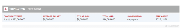 兰代尔在2023年夏跟火箭签下了一份四年3200万的合同,这份合同每一年都是800万薪水,但这份合同只有第一年是全额保障的,第二年是部分保障但第二年火箭转正了他的合同,在第三年的合同生效之前火箭就裁掉了他,如今兰代尔在灰熊拿底薪。